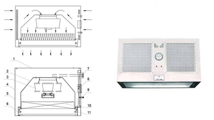 層流罩由箱體、風(fēng)機(jī)、高效空氣過(guò)濾器、阻尼層、燈管等部件組成,既能隔離產(chǎn)品避免污染,又能從潔凈室抽出潔凈空氣,并通過(guò)風(fēng)扇放置干凈的空氣。在該區(qū)域,廢氣會(huì)從底部排出。與單獨(dú)的潔凈室相比,層流罩效果更顯著,操作更方便,價(jià)格也更低。不但對(duì)廠房建設(shè)要求低,而且節(jié)能省電,化工等部門(mén)使用比較多。