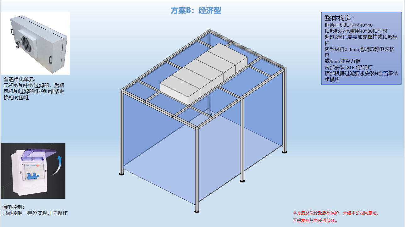模塊化組裝,支持移動(可選萬向輪)、擴(kuò)展或調(diào)整潔凈級別(百級至十萬級)。